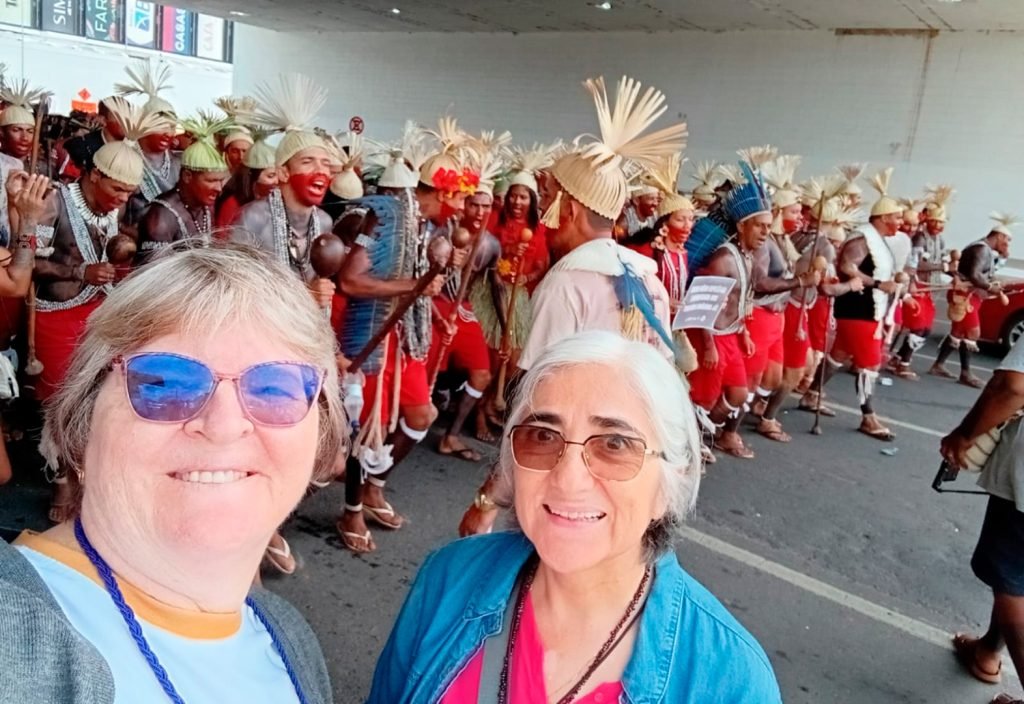 No dia 9 de abril, quarta-feira, as Assessoras da CRB Nacional participaram da caminhada dos povos indígenas pelas ruas de Brasília, uma das ações do ATL. A mobilização contou com cantos, pinturas, faixas e falas que destacaram a necessidade de políticas públicas, do reconhecimento de lideranças e da continuidade dos processos de demarcação de terras.