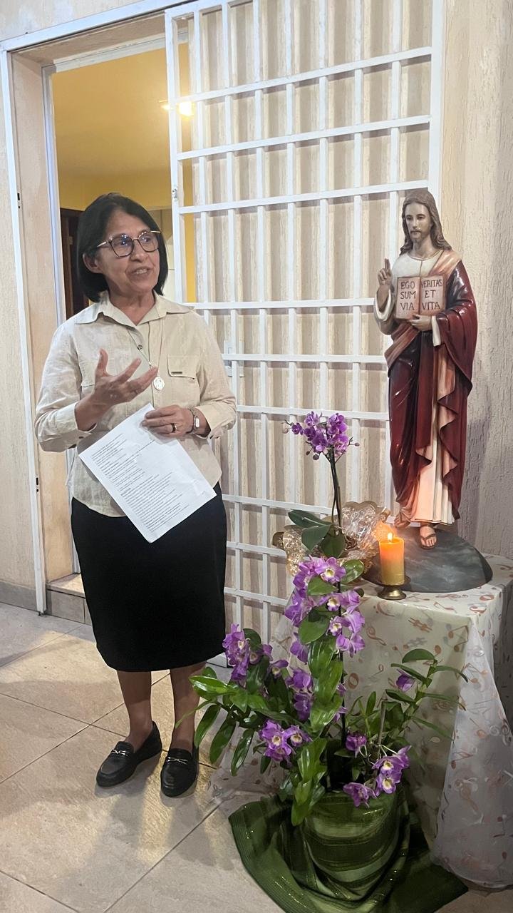 Neste sábado, 25 de outubro, a comunidade das Irmãs Pias Discípulas do Divino Mestre, em Brasília, celebrou com alegria a solenidade de Jesus Cristo Divino Mestre, Caminho, Verdade e Vida, unindo a solenidade litúrgica à recordação dos 50 anos de presença da congregação na capital federal. A celebração eucarística, presidida pelo Padre Gilmar Antônio Aguiar, sacerdote Camiliano, foi realizada na residência da comunidade religiosa e reuniu irmãs, amigos, colaboradores e membros da Família Paulina.